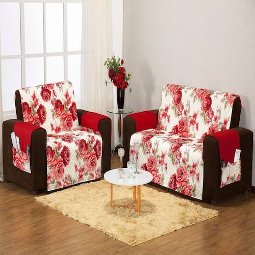 Protetor De Sofá 2 E 3 Lugares Floral Vermelho Enxovais Aquarela O protetor de sofá floral é ótimo para proteger seu estofado e também pode ser como peça decorativa. É fácil de colocar e muito prática. Confeccionada na parte superior em 60% algodão e 40% poliéster, enchimento em 100% poliéster, e tecido inferior em 100% polipropileno.Composição:- 1 protetor de sofá de 03 lugares 1,85m x 1,35m- 1 protetor de sofá de 02 lugares 1,85m x 0,85m- Braços 75cm x 36cmTamanho - Padrão 2 e 3 lugares