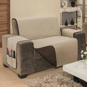 O protetor de sofá e suas especificações:Confeccionado com tecido superior e inferior 100% microfibra, enchimento em 100% poliéster, com forro IMPERMEÁVEL 100% polipropileno e com acabamento em viés, agora a qualidade e o conforto do seu sofá estão garantidos. Matelado em ultrassônico formato de losangos, tamanho 5x5, o tecido do seu protetor fica mais firme, trazendo sofisticação, beleza e conforto ao seu sofá. O IMPERMEÁVEL protege seu sofá de bebidas ou qualquer tipo de liquido que venha cair sobre ele. Além disso, outra grande vantagem deste lindo protetor é que ele é dois em um, pois ele possui dupla face e pode ser dos dois lados, com cada lado de uma cor, para você poder variar ainda mais o visual do seu ambiente, sempre que quiser. Cada protetor possui porta objetos em um dos braços do sofá, podendo ser utilizado nas duas faces. Além disso, o protetor garante alta proteção ao seu sofá, conservando-o muito mais, por um tempo prolongado. Para que serve o protetor?O protetor impermeável aumenta a durabilidade do seu sofá, protegendo-o de bebidas ou qualquer tipo de liquido que venha cair sobre ele e é considerado uma peça ideal para modernizar o seu ambiente e deixá-lo ainda mais elegante, renovando o visual de sua sala ou escritório. Além disso, ele protege e aumenta a durabilidade do seu sofá de uma maneira muito prática, moderna e bonita. Conteúdo da Embalagem: 01 - Protetor para Sofá de 2 Lugares, sendo:Capa: 1,90m x 1,20m | 2 Braços: 0,80cm x 0,40cm (braço do lado direito com porta objetos)(Medida total do produto 2,80m x 1,90m) Veste sofá com as seguintes medidas aproximadas: Protetor de 2 Lugares:Altura total do sofá: 97cmProfundidade do assento: 55cmLargura máxima do assento: 1,20mAltura máxima do encosto: 70cmLargura máxima do braço: 27cmAltura do assento: 50cmLargura total do sofá: 1,89m Composição:Tecido Superior e Inferior: 100% microfibraEnchimento: 100% poliésterForro: 100% polipropilenoAcabamento: Em viés e matelado impermeável em todo o protetor Dupla Face Acompanha porta objetos nos dois protetoresAcabamento em viés