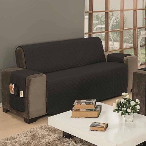Marca: MR ENXOVAIS | Estampa: Não se Aplica | Medidas: 01 - Protetor para Sofá de 3 Lugares, sendo:Capa: 1,90m x 1,50m | 2 Braços: 0,80cm x 0,40cm (braço do lado direito com porta objetos)(Medida total do produto: 3,05m x 1,90m) | Número de Peças: Avulsa | Material: Poliéster | Cor Predominante: Preto/Cinza | Cama Indicada: Não se Aplica
