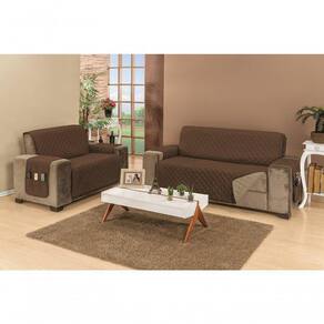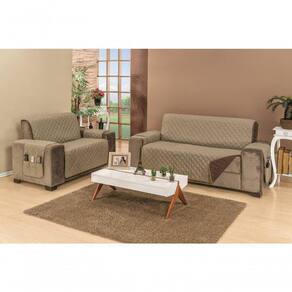 Protetor De Sofá Dupla Face Manu 2 E 3 Lugares King - Cáqui-marrom