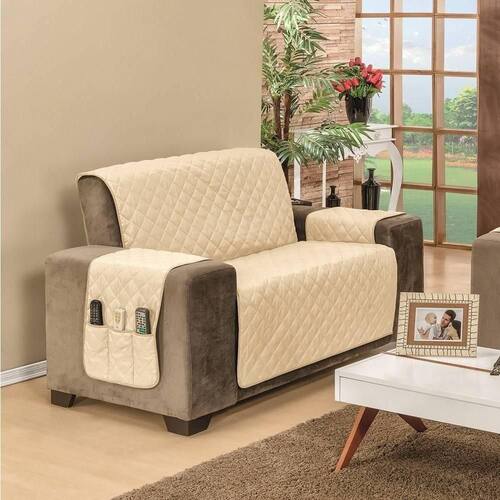 Marca: MR ENXOVAIS | Estampa: Não se Aplica | Medidas: 01 - Protetor para Sofá de 2 Lugares, sendo:Capa: 1,90m x 1,20m | 2 Braços: 0,80cm x 0,40cm (braço do lado direito com porta objetos)(Medida total do produto 2,80m x 1,90m) | Número de Peças: Avulsa | Material: Poliéster | Cor Predominante: Cáqui/ Palha | Cama Indicada: King