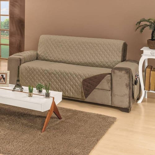 Confeccionado com tecido superior e inferior 100% microfibra, enchimento em 100% poliéster e com acabamento em viés, agora a qualidade e o conforto do seu sofá estão garantidos. Matelado em formato de losangos, tamanho 5x5, o tecido do seu protetor fica mais firme, trazendo sofisticação, beleza e conforto ao seu sofá. Além disso, outra grande vantagem deste lindo protetor é que ele é dois em um, pois ele possui dupla face e pode ser dos dois lados, com cada lado de uma cor, para você poder variar ainda mais o visual do seu ambiente, sempre que quiser. Cada protetor possui porta objetos em um dos braços do sofá, podendo ser utilizado nas duas faces. Além disso, o protetor garante alta proteção ao seu sofá, conservando-o muito mais, por um tempo prolongado.