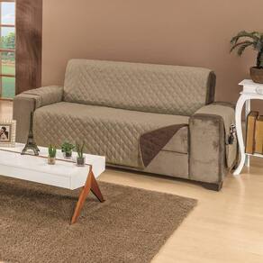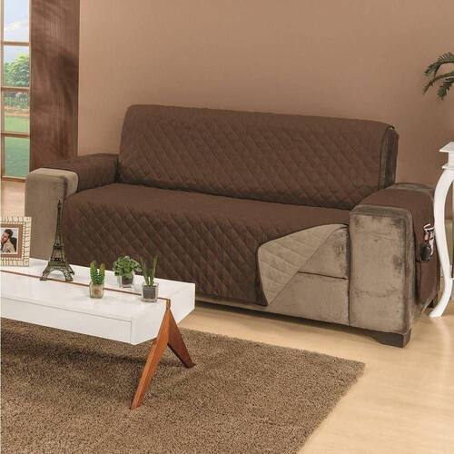 Protetor De Sofá Dupla Face Manu 3 Lugares - Cáqui/marrom