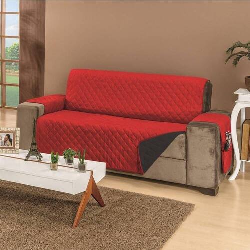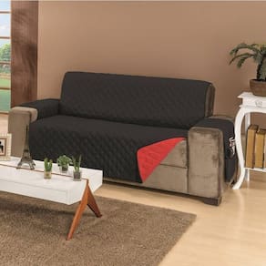 Protetor De Sofá Dupla Face Manu 3 Lugares - Preto/vermelho