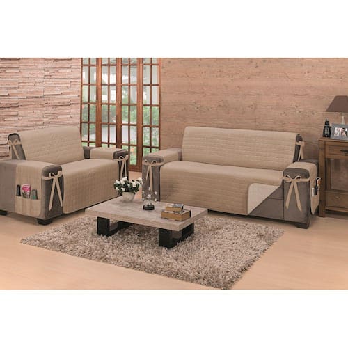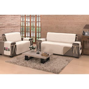 Protetor de Sofá Dupla Face Premium 2 e 3 Lugares - Cáqui e PalhaConfeccionado em Percal 150 fios e com acabamento em Viés, o protetor garante a durabilidade e o conforto do seu sofá. Possui 4 laços de fixação para melhor ajuste e porta objetos em um dos braços. Além disso, seu protetor é dois em um e pode ser colocado dos dois lados, para você mudar o visual do ambiente sempre que quiser.Contém:1 Protetor para sofá de 3 lugares com medidas:Capa: 1,90m x 1,50m / Braços: 80cm x 40cm (porta objetos no braço direito)Medida total do produto: 3,05m x 1,90m1 Protetor para sofá de 2 lugares com medidas:Capa: 1,90m x 1,10m / Braços: 80cm x 40cm (porta objetos no braço direito)Medida total do produto 2,70m x 1,90mVeste sofá com as seguintes medidas aproximadas:Protetor de 3 lugares:- Altura total do sofá: 97cm- Profundidade do assento: 55cm- Largura máxima do assento: 1,50m- Altura máxima do encosto: 70cm- Largura máxima do braço: 27cm- Altura do assento: 50cm- Largura total do sofá: 2,24mProtetor de 2 lugares:- Altura total do sofá: 97cm- Profundidade do assento: 55cm- Largura máxima do assento: 1,10m- Altura máxima do encosto: 70cm- Largura máxima do braço: 27cm- Altura do assento: 50cm- Largura total do sofá: 1,79mComposição:Tecido superior e inferior: Percal 150 fios 80% algodão/20% poliésterEnchimento: 100% poliéster- Acabamento em viés