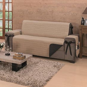 Protetor De Sofá Dupla Face Premium 2 E 3 Lugares - Preto/cáqui