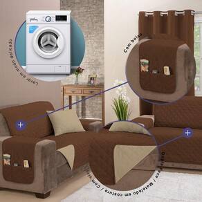 Para determinar a largura do assento de cada sofá, meça-o de um braço ao outro, excluindo os próprios braços. Essa medida deve ser aproximada à largura do assento das capas. Os braços são costurados junto às capas, e os bolsos ficam disponíveis em um dos braços de cada protetor, variando entre o lado direito e esquerdo.
