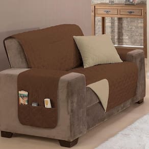 Para determinar a largura do assento do seu sofá, meça-o de um braço ao outro, excluindo os próprios braços. Essa medida deve ser aproximada à largura do assento da capa. Os braços são costurados junto às capas, e os bolsos ficam disponíveis em um dos braços de cada protetor, variando entre o lado direito e esquerdo.