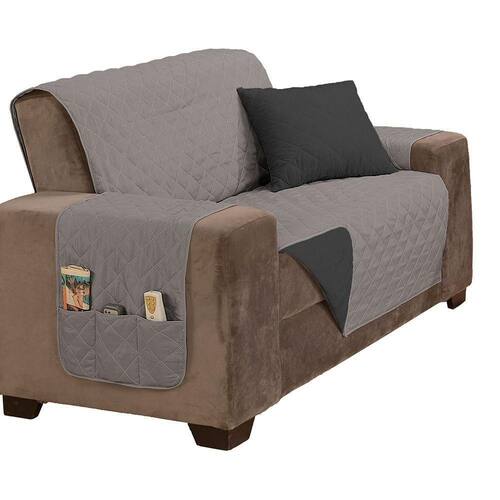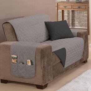 Protetor De Sofá Manu Dupla Face Padrão 2 Lugares Microfibra - Preto/cinza