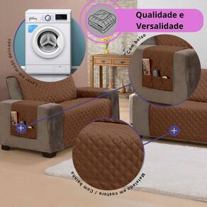 Protetor de Sofá Matelado 3 Lugares com Acabamento Refinado Variação: Marrom O Protetor de Sofá Classic é a escolha ideal para quem busca proteção com excelente custo-benefício, combinando funcionalidade e estilo para o seu ambiente. Design Matelado e Moderno: Este modelo apresenta um padrão matelado em linha, onde as costuras formam elegantes desenhos de losangos, proporcionando não apenas proteção, mas também um toque moderno e sofisticado ao seu sofá. Praticidade com Bolsos: Incorporando funcionalidade ao seu dia a dia, o Classic conta com bolsos estrategicamente localizados em um dos braços da capa. Essa adição proporciona um espaço conveniente para armazenar pequenos itens, mantendo tudo ao seu alcance. Acabamento Impecável: As bordas do protetor são cuidadosamente finalizadas em bainha, garantindo um acabamento refinado e durabilidade estendida. Cada detalhe é pensado para elevar a estética do seu sofá. Especificações Técnicas: Conteúdo da Embalagem: 01 Protetor de Sofá Classic 3 Lugares King Medidas Aproximadas Largura x Altura : Largura do assento da capa: 1,80 m para garantir o ajuste perfeito, meça a largura do assento do seu sofá de um braço a outro, desconsiderando os próprios braços e encontre a medida do assentos do seu sofá Capa: 1,80 x 1,90 m Braços: 0,40 x 0,80 m cada Medida total do produto com os braços: 3,40 x 1,90 m Composição de Materiais: Tecido: 100% Poliéster Manta: 100% Poliéster Forro: 100% Polipropileno Detalhes Adicionais: Matelado em linha para maior resistência Bolsos funcionais em um dos braços Acabamento refinado em bainha Lavagem em máquina no modo delicado para facilitar a manutenção Informações Importantes: As fotos do produto são representativas, e as tonalidades de cor podem variar de acordo com o monitor ou lotes de tecido diferentes. Recomendamos verificar as medidas na descrição junto ao conteúdo da embalagem. Informações Gerais: - Material visual ilustrativo; - Pode haver alterações na tonalidade da cor da imagem do produto, devido a diferença de telas de visualização; - Fique atento a à descrição do produto, podendo não apresentar todas as peças que constam no material visual; - contra defeito de fábrica. Marca: Não Informado Ean: 7904581032197