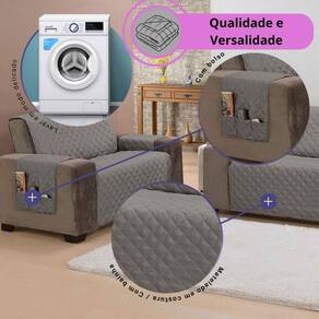 Protetor de Sofá Matelado 3 Lugares com Acabamento Refinado Variação: Cinza O Protetor de Sofá Classic é a escolha ideal para quem busca proteção com excelente custo-benefício, combinando funcionalidade e estilo para o seu ambiente. Design Matelado e Moderno: Este modelo apresenta um padrão matelado em linha, onde as costuras formam elegantes desenhos de losangos, proporcionando não apenas proteção, mas também um toque moderno e sofisticado ao seu sofá. Praticidade com Bolsos: Incorporando funcionalidade ao seu dia a dia, o Classic conta com bolsos estrategicamente localizados em um dos braços da capa. Essa adição proporciona um espaço conveniente para armazenar pequenos itens, mantendo tudo ao seu alcance. Acabamento Impecável: As bordas do protetor são cuidadosamente finalizadas em bainha, garantindo um acabamento refinado e durabilidade estendida. Cada detalhe é pensado para elevar a estética do seu sofá. Especificações Técnicas: Conteúdo da Embalagem: 01 Protetor de Sofá Classic 3 Lugares King Medidas Aproximadas Largura x Altura : Largura do assento da capa: 1,80 m para garantir o ajuste perfeito, meça a largura do assento do seu sofá de um braço a outro, desconsiderando os próprios braços e encontre a medida do assentos do seu sofá Capa: 1,80 x 1,90 m Braços: 0,40 x 0,80 m cada Medida total do produto com os braços: 3,40 x 1,90 m Composição de Materiais: Tecido: 100% Poliéster Manta: 100% Poliéster Forro: 100% Polipropileno Detalhes Adicionais: Matelado em linha para maior resistência Bolsos funcionais em um dos braços Acabamento refinado em bainha Lavagem em máquina no modo delicado para facilitar a manutenção Informações Importantes: As fotos do produto são representativas, e as tonalidades de cor podem variar de acordo com o monitor ou lotes de tecido diferentes. Recomendamos verificar as medidas na descrição junto ao conteúdo da embalagem. Informações Gerais: - Material visual ilustrativo; - Pode haver alterações na tonalidade da cor da imagem do produto, devido a diferença de telas de visualização; - Fique atento a à descrição do produto, podendo não apresentar todas as peças que constam no material visual; - contra defeito de fábrica. Marca: Não Informado Ean: 7900060237527