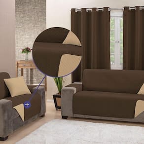 A capa de sofá é cuidadosamente desenvolvida com um material interno que retém líquidos, prevenindo e reduzindo os impactos de possíveis acidentes no seu estofado. Sua versatilidade é evidenciada pelo design que permite o uso dos dois lados, cada um apresentando uma opção de cor distinta, permitindo que você renove o visual do seu ambiente conforme sua preferência.