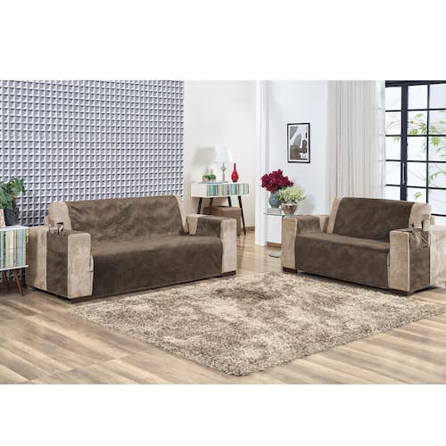 Protetor de sofá suede 02 peças chocolate Protetor de sofá suede veludo 3 e 2 peças