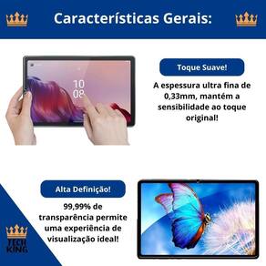 Dureza e durabilidade: O vidro temperado é extremamente resistente e durável, oferecendo uma camada de proteção para a tela do seu Tab Lenovo M9 9 polegadas 2020.