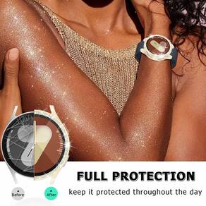 Kit com 12 capas protetoras de tela com glitter e anel de strass, compatíveis com Samsung Galaxy Watch 7 44mm. Proteção total contra batidas e arranhões, material flexível em TPU macio.Tipo