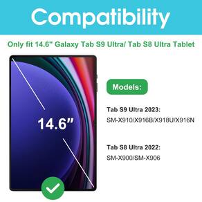 Compatibilidade: Compatível somente com Samsung Galaxy Tab S10 Ultra 2024 (SM-X920) /S9 Ultra 14,6 polegadas, versão 2023 (modelo: X910B X916B). - Protetor de tela de vidro temperado de qualidade projetado exclusivamente para o tablet Samsung Galaxy Tab S10 Ultra 2024 (SM-X920) /Tab S9 Ultra 14,6", versão 2023 (modelo: SM-X910/SM-X916B); SOMENTE Tab S8 Ultra (SM-X900/X906). Verifique o número do modelo “SM-X***” clicando em “Configurações” - “Sobre o dispositivo” antes de comprar - Resistência a arranhões: feito de vidro temperado de dureza 9H, oferece proteção perfeita para a tela contra arranhões, quedas acidentais e desgaste diário - Sensibilidade ao toque real: filme ultrafino (0,33 mm de espessura) com integração de bordas arredondadas, mantém o perfil fino do tablet e garante uma resposta suave ao toque para um usuário perfeito experiência - Alta transparência: vidro de alta definição com revestimento oleofóbico, mantendo o autêntico do tablet qualidade de tela e repelindo impressões digitais, mantendo a tela do tablet sempre nítida - Instalação sem bolhas: o adesivo de silicone avançado permite uma aplicação fácil, garantindo uma configuração descomplicada, sem resíduos ou bolhas; a aplicação leva apenas alguns segundos
