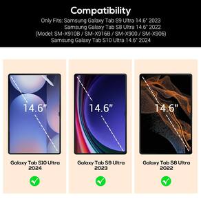 ProCase Pacote com 2 protetores de tela para Galaxy Tab S10 Ultra 2024 / S9 Ultra 14,6 polegadas 2023 / Tab S8 Ultra 2022, protetor de tela de vidro temperado para tablet Galaxy Tab S10 Ultra / S9 - Película de vidro temperado de qualidade projetada exclusivamente para o tablet Samsung Galaxy Tab S10 Ultra 2024 (SM-X920)/Tab S9 Ultra 14,7 polegadas versão 2023 (modelo: SM-X910/SM-X916B); Tab S8 Ultra (SM-X900/X906) apenas. Verifique o número do modelo "SM-X***" clicando em "Configurações" - "Sobre o dispositivo" antes de comprar - Resistência a arranhões: Feito de vidro temperado de dureza 9H, oferece proteção perfeita para a tela contra arranhões, quedas acidentais e desgaste diário - Sensibilidade ao toque verdadeira: Película ultrafina (0,33 mm de espessura) com integração de borda arredondada, mantém o perfil fino do tablet e garante uma resposta suave ao toque para uma experiência de usuário perfeita - Alta transparência: vidro transparente HD com um revestimento oleofóbico, mantendo a qualidade de exibição autêntico do tablet e repelindo impressões digitais, mantendo a tela do tablet clara em todos os momentos - Instalação sem bolhas: o adesivo de silicone avançado permite uma aplicação sem esforço, garantindo uma configuração sem complicações sem resíduos ou bolhas; leva apenas alguns segundos para aplicar