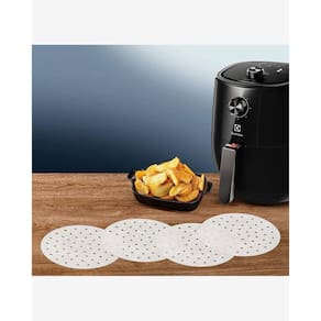 Protetor descartável ant. Air fryer Pensando em mais praticidade e em um complemento para a sua experiência com as air fryers, a electrolux desenvolveu o protetor descartável antiaderente, que além de tornar o preparo dos alimentos mais prático, facilita a limpeza e prolonga a vida útil do revestimento interno do cesto das fritadeiras. Alimentos delicados e cheios de sabor: evita que os alimentos grudem no fundo do cesto, preservando a textura e a apresentação até de ingredientes mais delicados. Compatibilidade: air fyers eaf10, eaf11, eaf20, eaf30 e eaf31 Um saco contém 50 unidades.
