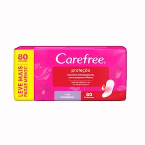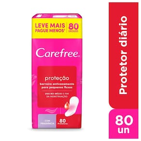 Protetor Diário Carefree Proteção com fragrância 80 Unidades Leve Mais Por Menos Carefree Proteção é perfeito para o comecinho e finalzinho da menstruação. Sua película protetora retém leves fluxos e