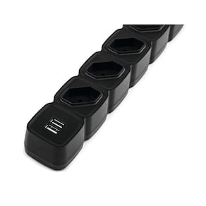 As quatro tomadas 2P+T suportam potência máxima de 1270W em 127V e 2200W em 220V, com corrente máxima de 10A, atendendo desde equipamentos de informática como notebooks, impressoras e monitores, até dispositivos de áudio, vídeo e acessórios. As duas portas USB integradas permitem o carregamento direto de smartphones, tablets, fones de ouvido e outros dispositivos compatíveis, dispensando o uso de carregadores externos e liberando espaço nas tomadas convencionais. Essa característica é ideal para quem busca otimizar o espaço de trabalho ou manter o ambiente doméstico mais organizado.
