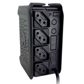 Recursos: Proteção tripla contra raios 24.000 a - 8/20 us : varistores de proteção contra surtos modos comum e diferencial , com sensor térmico ativo Ir power control: pode ser programado para ligar e desligar as tomadas de saída a partir de qualquer tecla de qualquer controle remoto infravermelho comum controle não incluso Powerlook configurável : desliga as saídas automaticamente ao detectar que os aparelhos conectados estão em stand-by, protegendo e economizando energia Block bad line: impede o liga-desliga dos equipamentos conectados às tomadas de saída durante as falhas e restabelecimentos da rede elétrica Controle por microprocessador: precisão digital no controle da energia Proteção eletrônica: autodesligamento por subtensão, sobretensão, sobrecarga ou outros distúrbios na rede elétrica Autodiagnóstico: realiza a leitura das condições da rede elétrica antes de acionar as saídas Filtro de linha: contra distúrbios da rede elétrica modos comum e diferencial True rms: garante medição precisa mesmo em redes sobrecarregadas e distorcidas, possibilitando a ligação do protetor em geradores
