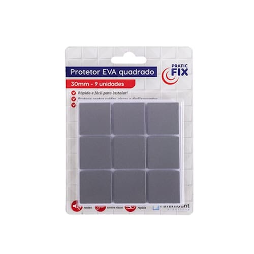Protetor EVA Adesivo Quadrado 30 mm com 9 UnidadesDescrição:Protetores EVA adesivos quadrados de 30 mm que evitam ruídos e protegem suas superfícies contra riscos. Com fixação rápida, são ideais para mesas, cadeiras e sofás, garantindo proteção e silêncio no dia a dia.Descrição técnica:Protetor EVA adesivo quadradoTamanho 30 mmContém 9 unidadesEvita ruídosProtege contra riscosFixação rápidaIndicado para mesas cadeiras e sofás