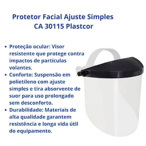 Adquira já seu Protetor Facial Ajuste Simples CA 30115 e garanta proteção, conforto e segurança em suas atividades profissionais!