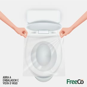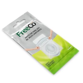 Protetor Freeco Para Uso Vaso Sanitário   O Protetor Higiênico Freeco para Vasos Sanitários é o seu aliado para uma experiência mais segura e confortável em banheiros públicos ou compartilhados. Compacto, prático e abrangente, sua embalagem com 3 unidades é ideal para levar na bolsa.   Ø AO USAR O SANITÁRIO, É MELHOR NÃO ENCOSTAR NO VASO VERDADE. Pode haver resquícios de urina, fazes e até sangue, que nem sempre estão visíveis. A superfície do assento e a tampa do vaso costumam ser locais com alta concentração microbiológica. O vaso sanitário pode parecer íntegro, mas nem sempre dá para notar pequenas rachaduras ou trincas na sua superfície, que podem virar um depósito de microrganismos. Ø É POSSÍVEL CONTRAIR DOENÇAS AO USAR O BANHEIRO VERDADE. O maior risco é contrair infecções virais e bacterianas ao entrar em contato com microrganismo que causam essas doenças. Assim, uma mão que tocou em alguma superfície contaminada, se for levada á boca, pode carregar bactérias para dentro do corpo. Essa falta de cuidados pode gerar doenças como gastroentecolites agudas virais e hepatite A. Já a candidíase vaginal, uma infecção bem comum, ocasionada por fungo, não pode ser contraída pelo contato com o vaso sanitário. MODO DE USAR Abra a embalagem, segure pelas pontas do protetor (suas mãos NÃO estarão em contato com o vaso) e vista o assento do vaso sanitário. PRONTO! 1.   Abra a embalagem e retire o protetor. 2.   Segure pelas pontas do protetor. 3.   Vista o assento sanitário. ·        Fácil de aplicar. ·        Evita contato direto da pele com o assento e com vaso, eliminando riscos de contaminações por bactérias e vírus.