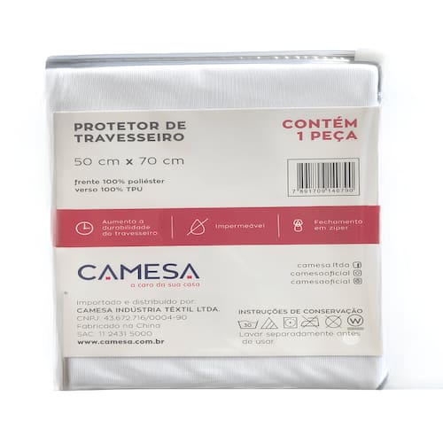 Benefícios do Protetor Camesa: Hipoalergênico e Silencioso: Protege seu travesseiro de bactérias, suor, odores e sujeira sem comprometer o seu conforto. Um aliado da higiene do dia a dia.Aumenta a Durabilidade: Garante que seu travesseiro dure mais, proporcionando economia e higiene. Proteção contra ácaros, suor e poeira.Fácil de Limpar: Lavável em máquina, facilitando a manutenção do produto sem a necessidade de passar.Fechamento com zíper. Especificações do Produto: Tecido: Microfibra 100% PoliésterComposição: Frente: 100% Poliéster, malha gel.Dimensões: 50 cm x 70 cmCor: BrancoAdote essa prática em sua rotina e transforme a qualidade do seu sono. Garanta já o seu Protetor de Travesseiro Impermeável Camesa e sinta a diferença na sua noite de descanso!