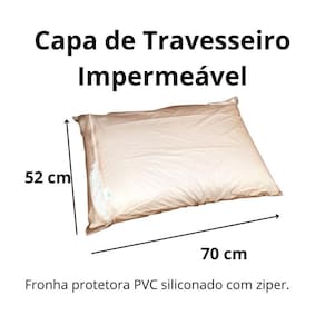 Protetor Impermeável de Travesseiro PVC Siliconado Com Ziper Capa de travesseiro siliconada Protetor PVC Siliconizado para Travesseiro com Ziper BEGE - Senior Care confortável que impede a passagem de líquidos, ácaros e seus dejetos; Também auxilia no combate de doenças alérgicas e respiratórias; Produto macio, lavável e impermeável, além de antialérgico e antiácaro. Composição: 100% PVC Siliconado. com elástico nas bordas facilitando a colocação. Medidas: 70cm x 52cm. Cor: Bege. Precauções Não utilizar máquinas de lavar e secar; Não passar ferro; Não utilizar alvejantes à base de cloro; Lavar manualmente com sabão neutro; Secar a sombra. PERGUNTAS FREQUENTES - O material é plástico Não, o Material pela Senior Care na confecção do nosso modelo Vapt Vupt é o PVC Siliconizado. - quando forrado por cima escorrega Depende muito do tecido, mas se for algodão não escorregará. - faz muito barulho Não, eles são confeccionados em PVC Siliconizado além de dar um toque muito macio possibilita que o lençol seja extremamente silencioso. Marca: Não Informado