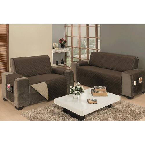 Confeccionado com tecido superior e inferior 100% microfibra, enchimento em 100% poliéster, com forro IMPERMEÁVEL 100% polipropileno e com acabamento em viés, agora a qualidade e o conforto do seu sofá estão garantidos. Matelado em ultrassônico formato de losangos, tamanho 5x5, o tecido do seu protetor fica mais firme, trazendo sofisticação, beleza e conforto ao seu sofá. O IMPERMEÁVEL protege seu sofá de bebidas ou qualquer tipo de liquido que venha cair sobre ele. Além disso, outra grande vantagem deste lindo protetor é que ele é dois em um, pois ele possui dupla face e pode ser usado dos dois lados, com cada lado de uma cor, para você poder variar ainda mais o visual do seu ambiente, sempre que quiser. Cada protetor possui porta objetos em um dos braços do sofá, podendo ser utilizado nas duas faces. Além disso, o protetor garante alta proteção ao seu sofá, conservando-o muito mais, por um tempo prolongado.