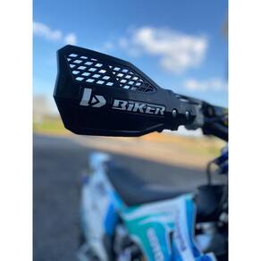 O protetor de mão Biker pode ser usado no motocross e trilha, protege as mãos contra pedra e barro que podem ser lançados pela moto a sua frente e contra batidas caso tenha uma colisão.