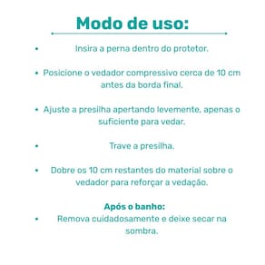 Perfeito para quem está em recuperação de fraturas, cirurgias ou possui curativos que não podem ter contato com água, proporcionando segurança, higiene e conforto no banho diário.