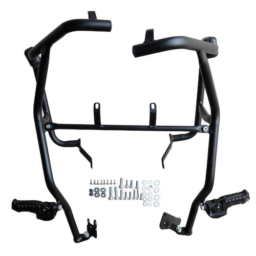 Seu maior diferencial é que já acompanha um par de pedaleiras para o apoio dos pés no protetor, melhorando o conforto e a dirigibilidade durante a pilotagem de sua moto.