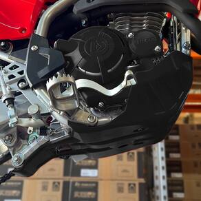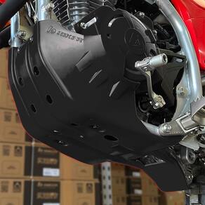 Projetado para criar um escudo de proteção no motor, age como uma barreira sólida contra pedras, detritos e impactos, absorvendo e dissipando choques durante a pilotagem.