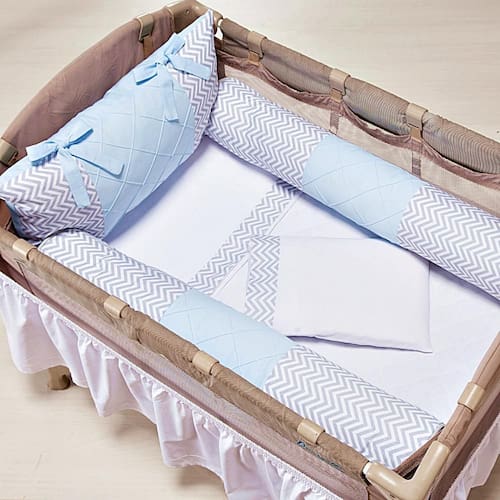 Protetor Para Berço Desmontável 4 Peças Chevron Azul Claro