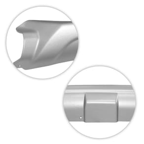 Fabricado em polipropileno com pintura na cor prata, sendo um material leve e resistente ao clima, possuindo uma alta durabilidade e um excelente acabamento.