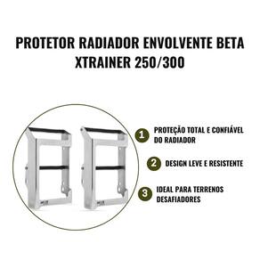 Projetado para "abraçar" o radiador por completo, seu formato envolvente evita que o radiador entorte ou sofra danos causados por impactos, oferecendo proteção total mesmo nos terrenos mais desafiadores.