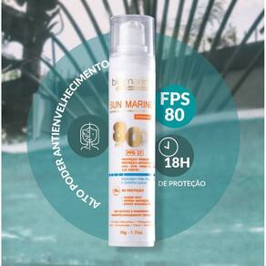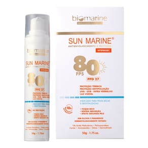 O Protetor Solar Sun Marine FPS80 da Biomarine oferece alta proteção solar associada a ativos antienvelhecimento. Ajuda a prevenir os sinais de envelhecimento precoce e mantém a pele hidratada. Possui textura leve, oil free e rápida absorção. Ideal para uso diário em todos os tipos de pele. Deixa a pele protegida, macia e com toque suave.