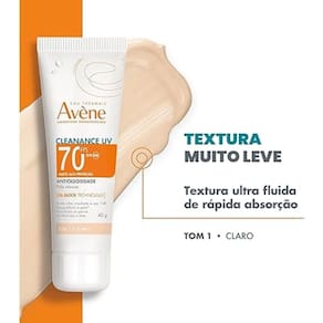Cleanance UV FPS70 Tom 1 - Claro é um protetor solar de muito alta proteção contra os raios UVB e UVA curtos e longos que possui uma tecnologia oil-block para o cuidado completo que reequilibra a pele e controla a oleosidade de maneira prolongada. Uniformiza o tom da pele, com uma cobertura natural e textura ultra fluida. Com uma combinação exclusiva de ativos no controle da oleosidade: monolaurina, p-refinyl e gluconato de zinco, garante: - 14h antioleosidade e absorção imediata; - Textura fluida e leve; - Diminui a aparência dos poros dilatados; - Mantém a aparência da pele mais uniforme; - Cobertura leve e natural Muito além de um protetor solar, reduz -43% da oleosidade da pele em 28 dias. O aliado perfeito no cuidado da pele oleosa. Disponível em 3 tons desenvolvidos especialmente para peles brasileiras que promovem uma cobertura leve, que uniformiza o tom da pele. Com Água Termal Avène, esse produto é hipoalergênico e não comedogênico e foi formulado de maneira a minimizar o possível surgimento de alergia. Associação exclusiva SUNSITIVE PROTECTION: sistema de filtros patenteados, com fórmula biodragradável que não agride os corais, plânctons e zooplânctons.