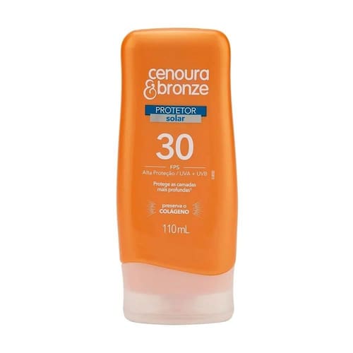 Características Principais do Produto: Marca: Cenoura e Bronze Fator de Proteção Solar: 30 Volume: 110 ml Resistência: Resistente à água Testado Dermatologicamente: Sim