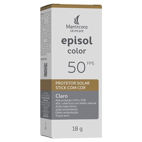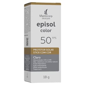 Episol color stick FPS 50 é um protetor solar facial em bastão muito prático e de fácil aplicação. Alta proteção contra os raios UVA, UVB e protege contra a luz visível, especialmente luz azul. Proteção imediata e é muito resistente à água e ao suor. Ação antioxidante e antipoluição (vitamina E). Ácido hialurônico que proporciona hidratação e ação em rugas e linhas finas. Preservação do colágeno através de uma tecnologia inovadora que minimiza os danos mais profundos na pele causados pelos raios infravermelhos, devido à ação antioxidante do produto. Possui toque aveludado e seco. Não forma rolling e não escorre nos olhos. É não comedogênico (não provoca cravos). Dermatologicamente e oftalmologicamente testado. Princípios ativos. Ácido hialurônico, óleo de semente de uva, vitamina.