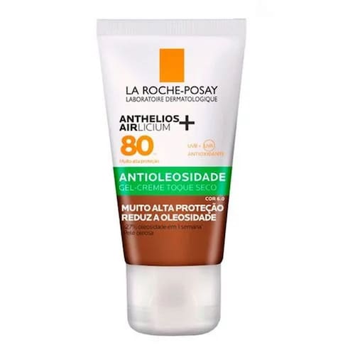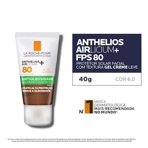 O que é o protetor solar Facial Anthelios Airlicium+ La Roche-Posay FPS 70 Com Cor? Anthelios Airlicium+ FPS 80 é um protetor solar com cor que reduz e controla a oleosidade do rosto, além de oferecer uma cobertura natural uniforme com uma sensação de pele limpa e fresca por até 12h.