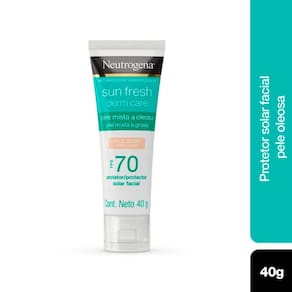PROTETOR SOLAR FACIAL NEUTROGENA SUN FRESH DERM CARE FPS 70 PELE CLARA Neutrogena Sun Fresh Derm Care Facial FPS 70 possui textura levinha e sequinha que não derrete. A excluisva tecnologia HELIOPLEXX Ean: 7891010253202