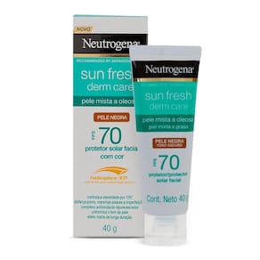 O que é e para que serve? Protetor Solar Facial Para Pele Oleosa NEUTROGENA SUN FRESH Derm Care Pele Negra FPS 70, 40g, controla a oleosidade por 12h, com complexo antioxidante rejuvenescedor e efeit