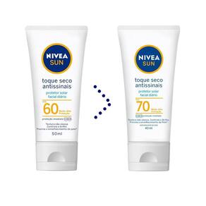 NIVEA SUN Protetor Solar Facial Toque Seco Antissinais FPS 70 é um produto revolucionário no cuidado com a pele. Este protetor solar não é apenas uma barreira contra os raios UVA/UVB, mas também uma defesa poderosa contra o envelhecimento precoce da pele.