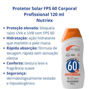 **Protetor Solar FPS 60 Corporal 120 ml Nutriex**