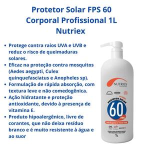 **Protetor Solar FPS 60 Corporal 1L Nutriex: Alta proteção, hidratação e conforto para sua pele**