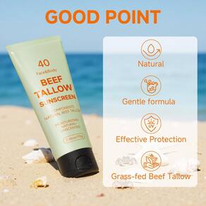Este protetor solar de sebo hidratante e sem cheiro possui sebo bovino alimentado com capim para proporcionar hidratação leve e duradoura para todos os tipos de pele. A fórmula nutritiva rica em lipídios de protetor solar de sebo absorve rapidamente, deixando a pele lisa e macia sem resíduos oleosos. Feito com uma mistura simples e limpa de ingredientes naturais e livre de aditivos sintéticos, o protetor solar de sebo suporta o equilíbrio diário de umidade enquanto mantém uma sensação respirável e confortável. Protetor solar de sebo perfeito para aqueles que procuram uma solução minimalista de cuidados com a pele que prioriza a pureza e a nutrição suave.