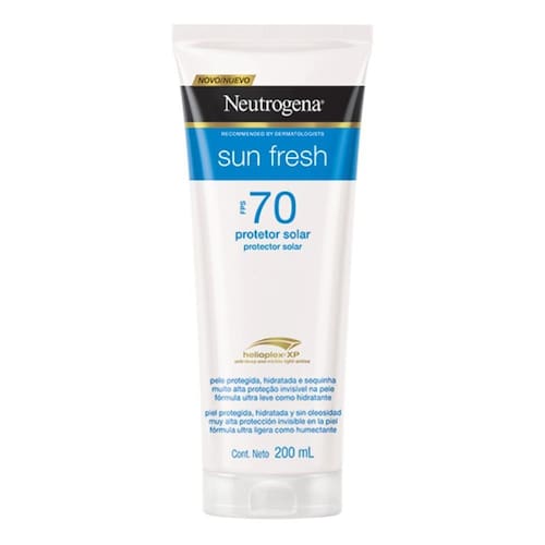 O Protetor Solar Neutrogena Sun Fresh FPS 70 possui uma fórmula não oleosa e com alto poder de absorção, devido à tecnologia Helioplex que proporciona uma solução altamente eficaz e uma proteção ampla e imediata contra os raios UVA/UVB, garantindo uma pele protegida, intensamente hidratada, seca e fresquinha. Além disso, Neutrogena Sun Fresh é indicado para todos os tipos de pele, inclusive as mais sensíveis ao sol, ajudando a prevenir contra o envelhecimento precoce e as manchas causadas pelo sol.